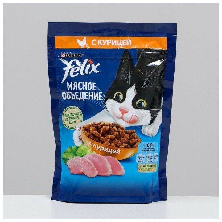 Сухой корм Felix "Мясное объедение" для кошек, курица, 200 г