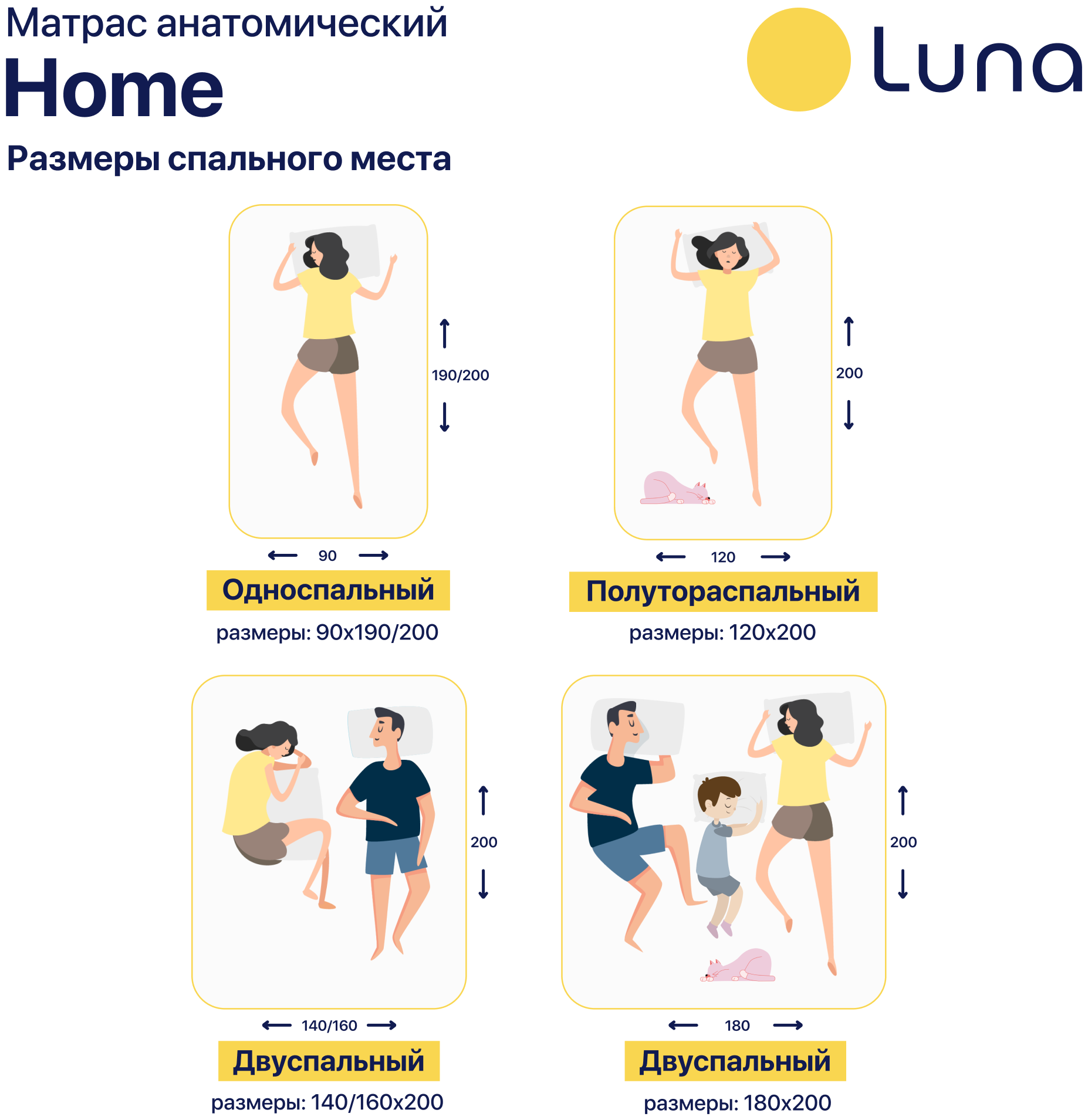 Матрас ортопедический Luna Home 140х200 см беспружинный, двухсторонний, гипоаллергенный, анатомический, высота 14 см 14 490 ₽ Подробнее