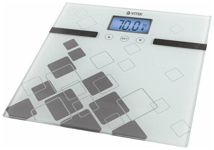 Лучшие цены. Весы напольные Vitek VT-1984 Теперь вы всегда можете контролировать не только свой вес, но и вести здоровый образ жизни. Стильные напольные весы VT-1984 с платформой из закаленного стекла – это уникальная возможность измерять жировую, мышечную, костную массу и содержание воды. Вам стоит лишь установить специальный режим измерения, ввести определенные данные, встать на весы и получить соответствую информацию. Вес вы можете легко определить с точностью до 1 грамма. Магазины в вашем городе.