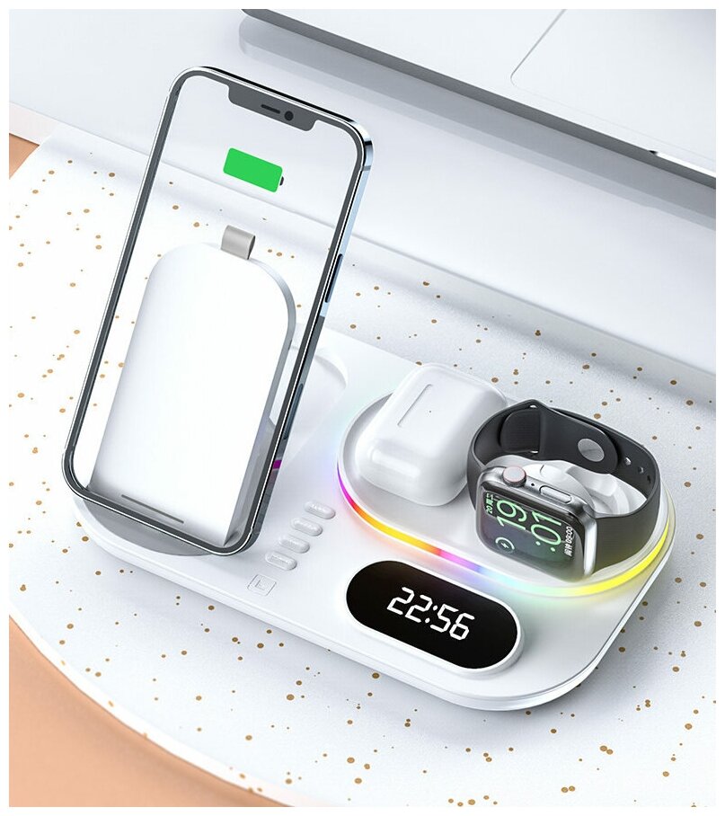 Зарядные станции Беспроводная зарядная станция 4 в 1 для телефонов, часов и наушников 30Вт / док-станция с быстрой зарядкой Qi для Apple iPhone / Android