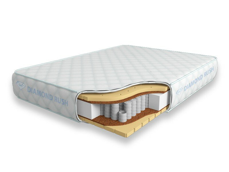 Лучшие цены. артикул 10101 Матрас Diamond Rush Comfy 725DR 90x195 Состав матраса: Латекс натуральный 3 см Кокосовая койра 1 см TFK (256 пруж./кв.м.) - 13 см Каркас из ППУ 10 см (EL2345). Магазины в вашем городе.