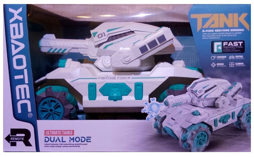 Танк на радиоуправлении HydroTank Xbaotec стреляющий гидрогелевыми шариками/Управление жестами/Танк на радиоуправлении/ бело-синий