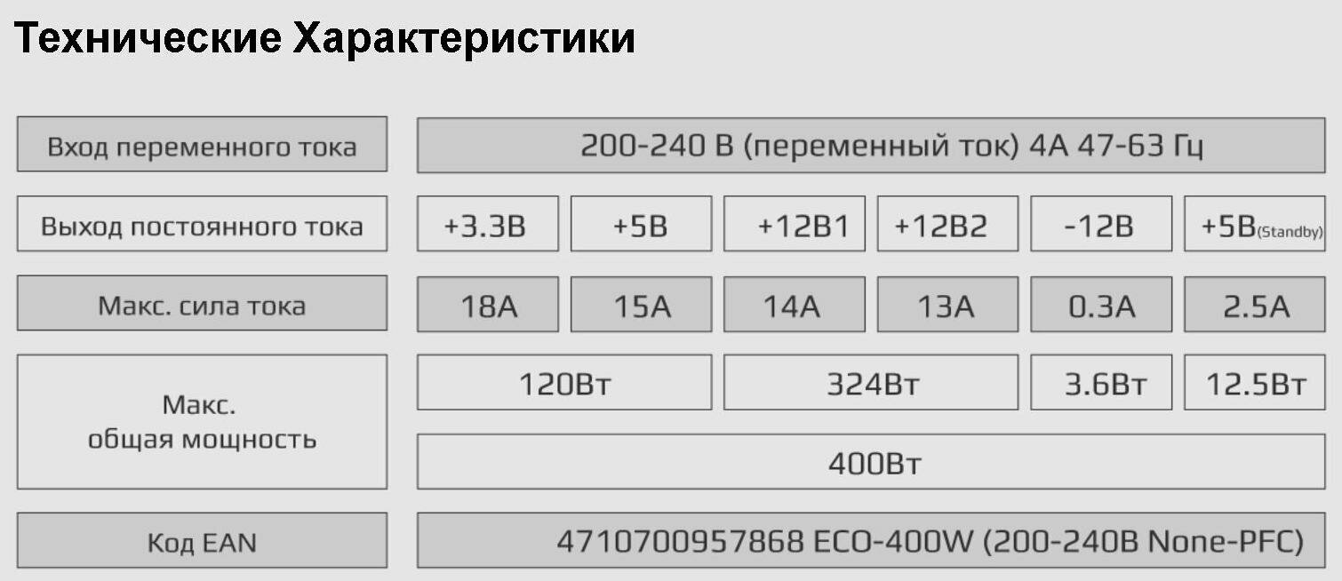 Aerocool Eco 400W Блок питания ECO Series ECO-400