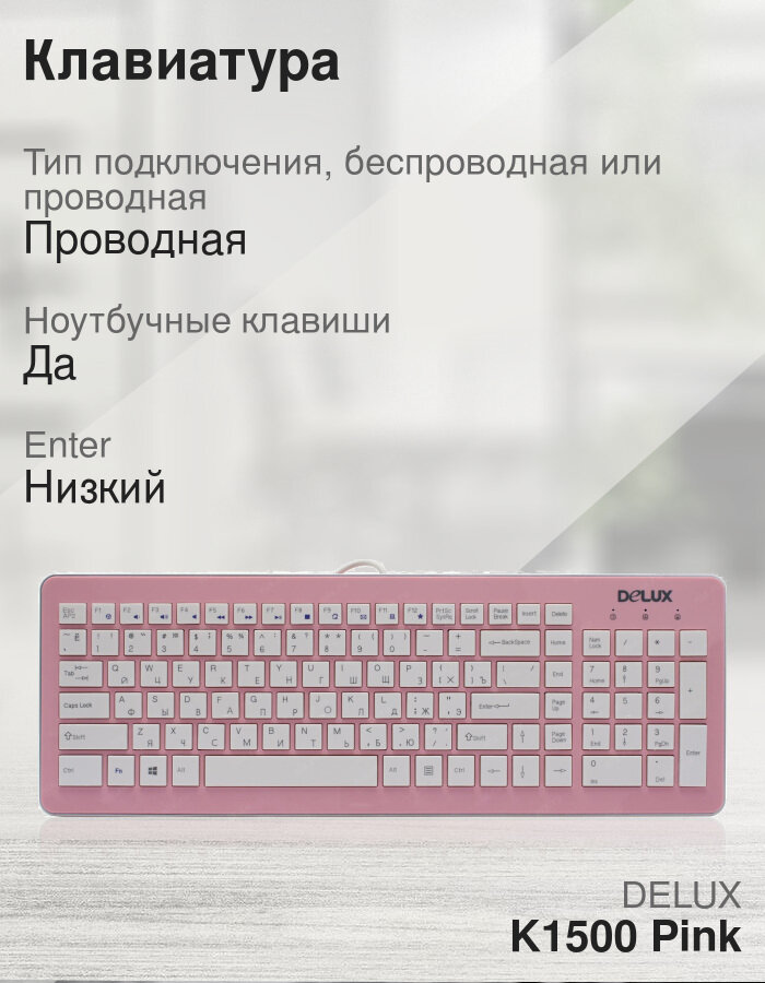 Клавиатуры Клавиатура Delux K1500 Pink USB