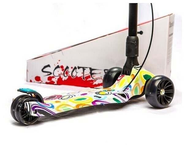 Самокаты Самокат детский складной Scooter "MAXI Принт" с ручным тормозом и широкими колесами (XJ-333) / Микс