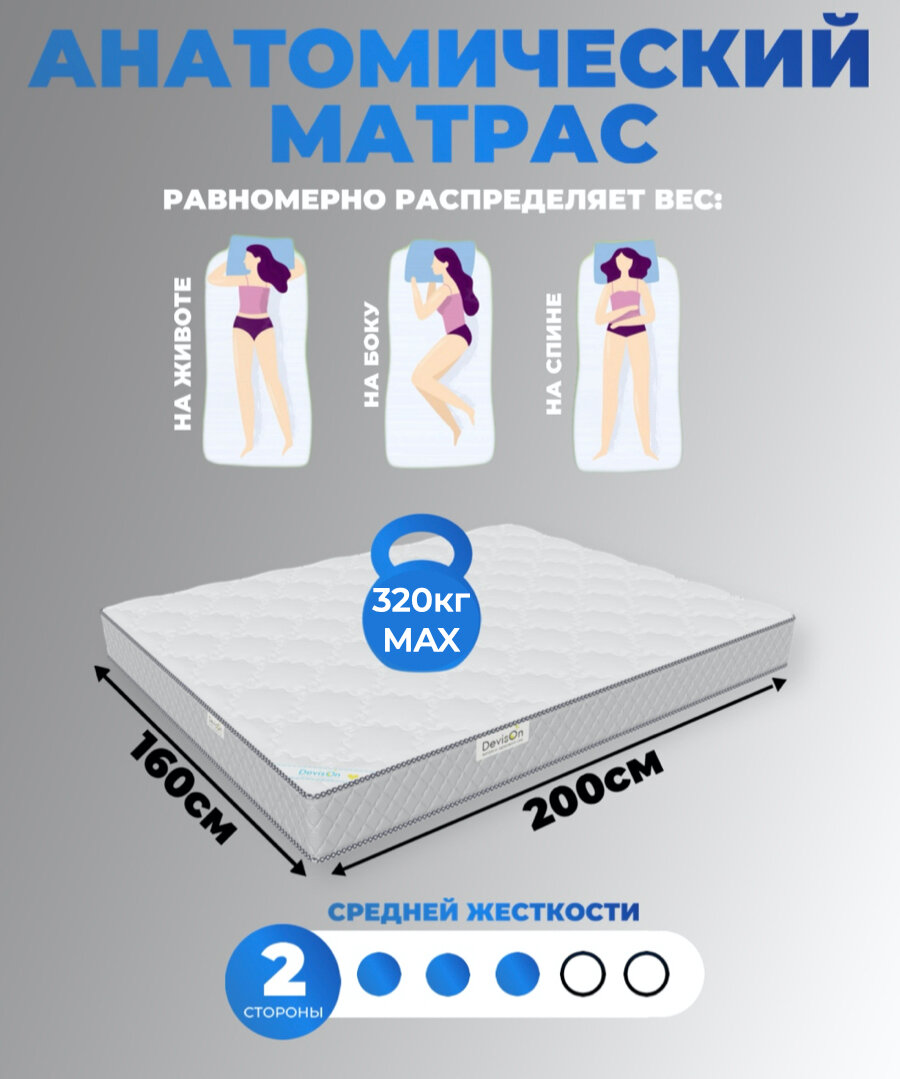 Матрас 160х200 ортопедический беспружинный Devison Prime высота 18 см 16 057 ₽ Подробнее