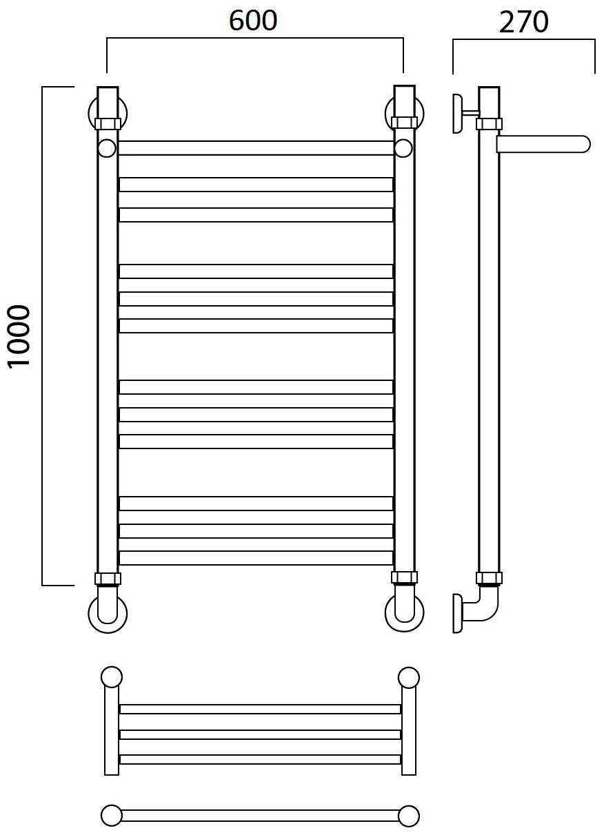 Полотенцесушители Водяной полотенцесушитель Акванерж Прямая групповая с полкой 1000x600