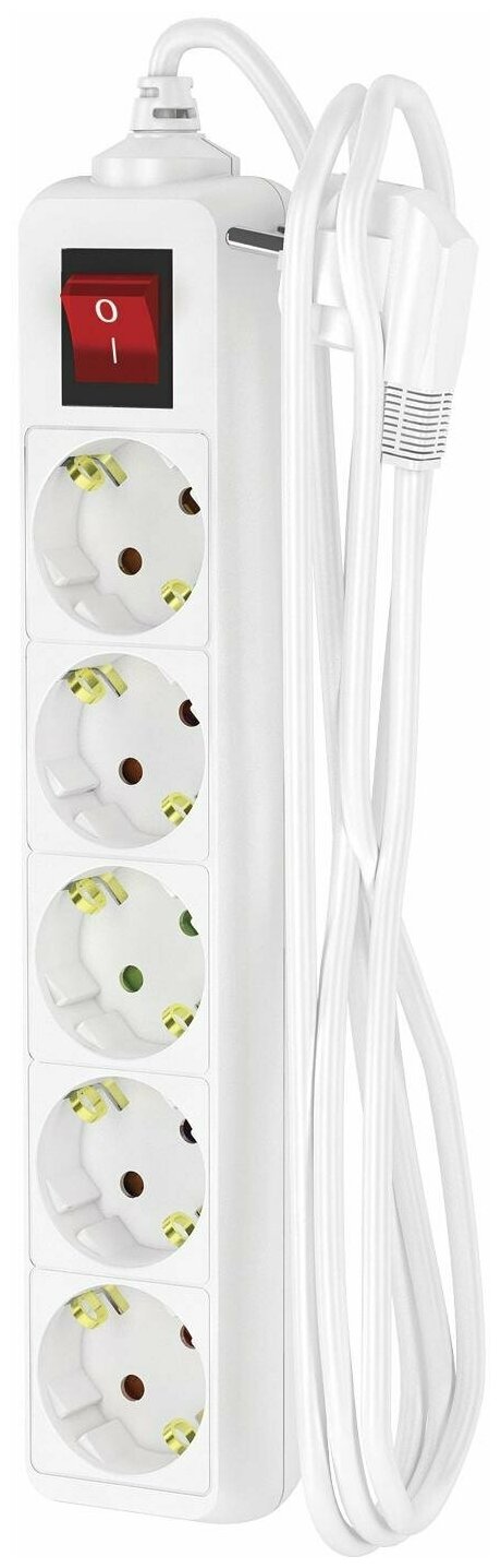 Удлинитель сетевой "фотон" 16-25ЕS, 2м, 5 розеток, с заземлением, белый с выключателем