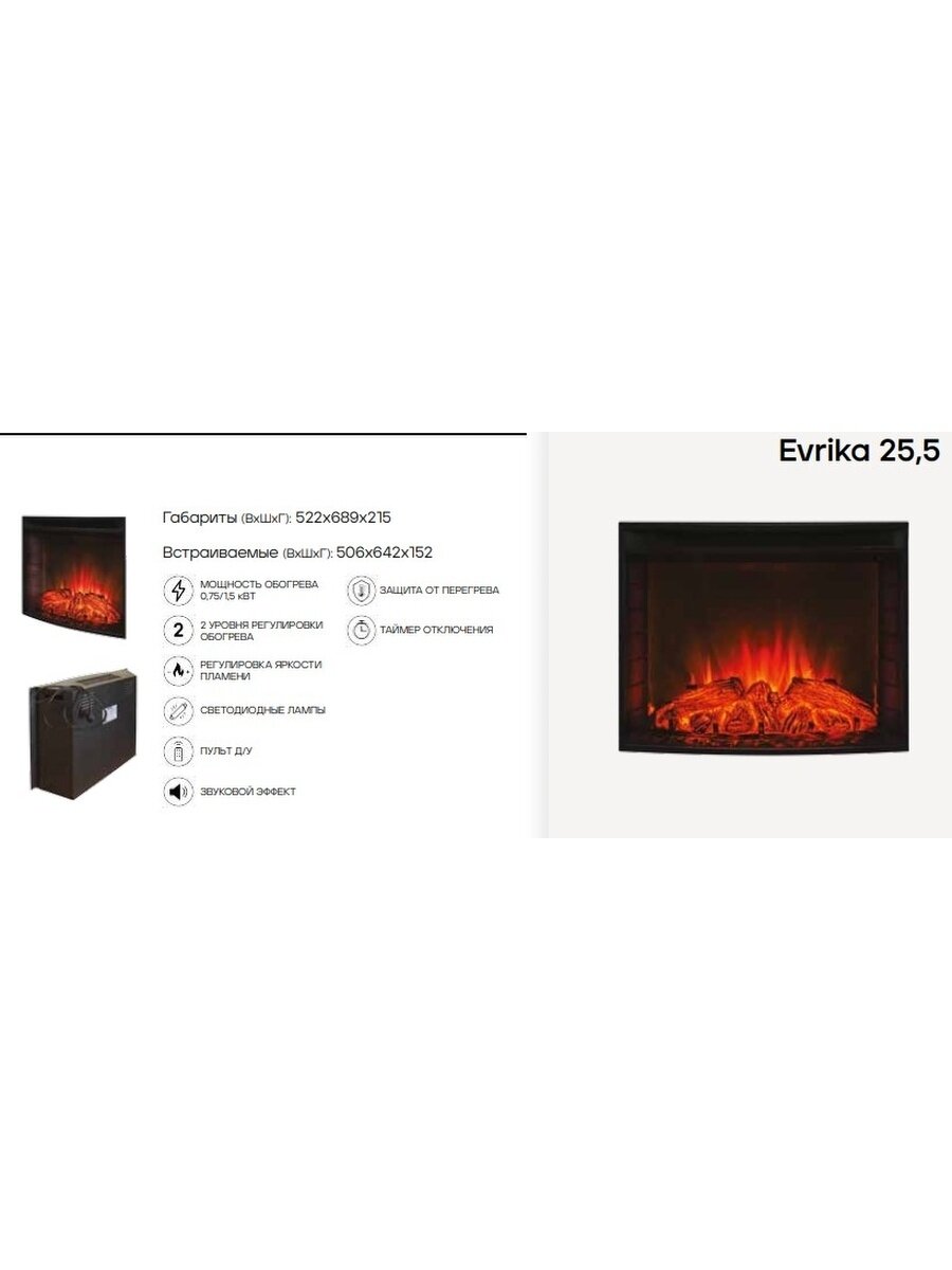 | Функции | регулировка температуры, термостат, тепловентилятор, регулировка яркости пламени, таймер отключения |
