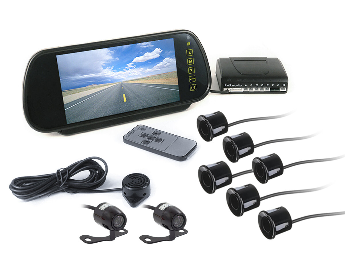 Камеры заднего вида Парктроник MasterPark 041-6-PZ с двумя камерами, шестью датчиками и монитором 7 дюймов в зеркале. Камера заднего хода