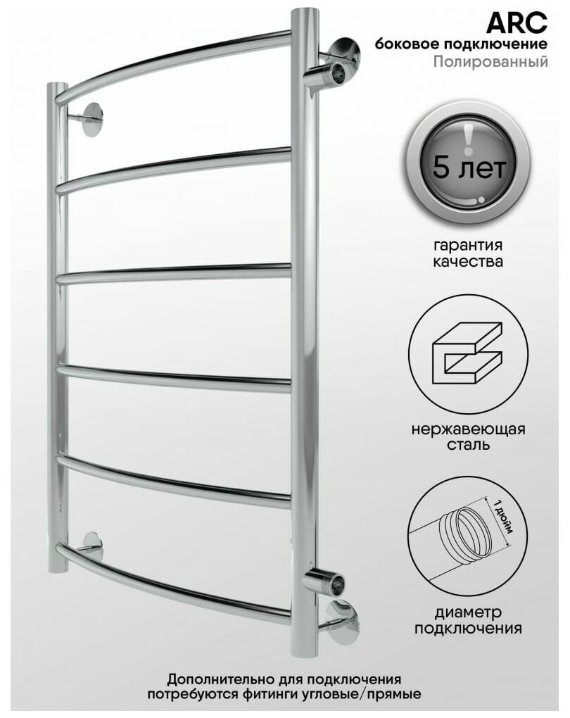Полотенцесушитель INDIGO Arc 1" - 1/2 70/50, м/о 60 см, боковое подключение LASW70-50-б/п-60