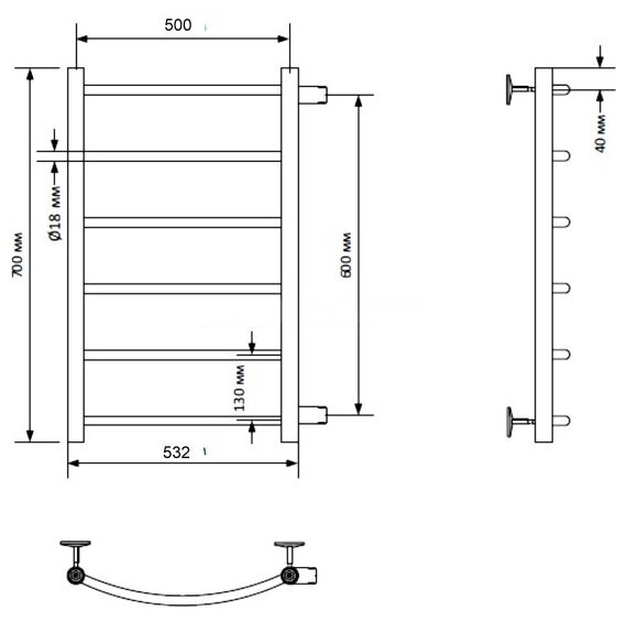 Лучшие цены. Характеристики Тип: водяной Материал: нержавеющая сталь Тип нагревателя: вода Количество перемычек: 6 шт Цвет: хром Ширина: 500 мм Высота: 700 мм Глубина: 85 мм Диаметр подключения: 1 дюйм Терморегулятор: отсутствует Заполнен маслом: нет Наличие полки: нет Нижнее подключение: нет Боковое подключение: да Диагональное подключение: нет Верхнее подключение: нет Вес нетто: 5 кг Форма: лесенка Палитра: серый Межосевое расстояние: 600 мм Регулировка температуры: нет Max рабочая температура: 110 °С Рабочее давление. Магазины в вашем городе.