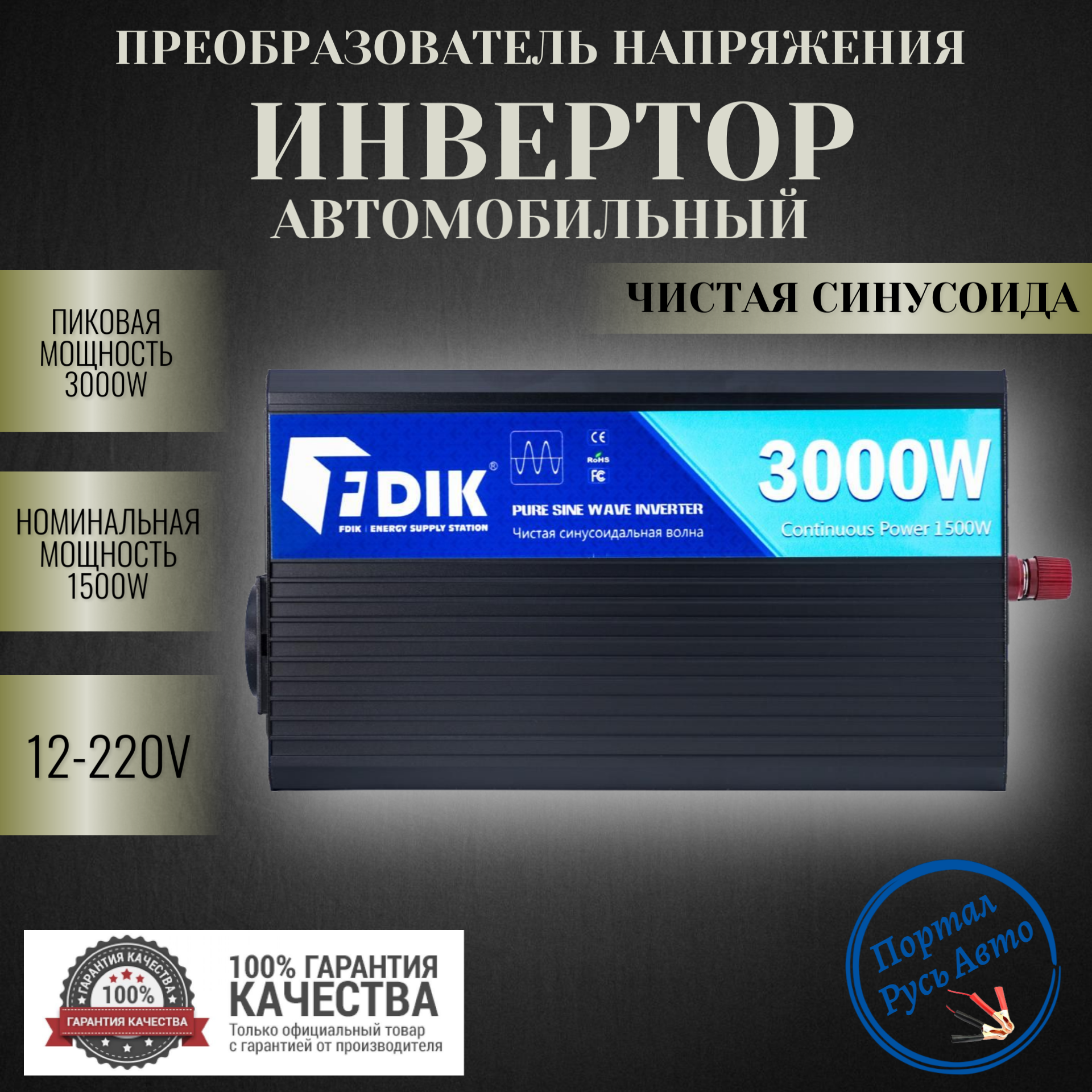 Инверторы Автомобильный преобразователь напряжения инвертор 3000 Вт 12В-220В FDIK 3000w 12v-220v Power inverter Чистая, немодифицированная синусоида.