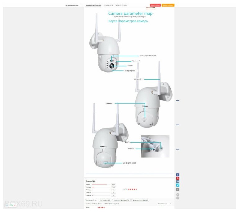 | Конструкция и возможности | PTZ (управляемая) / датчик освещенности / детекция движения (PIR) / микрофон / динамик обратной связи / мобильное приложение / оповещение о движении / ИК подсветка / LED-подсветка / картридер |
