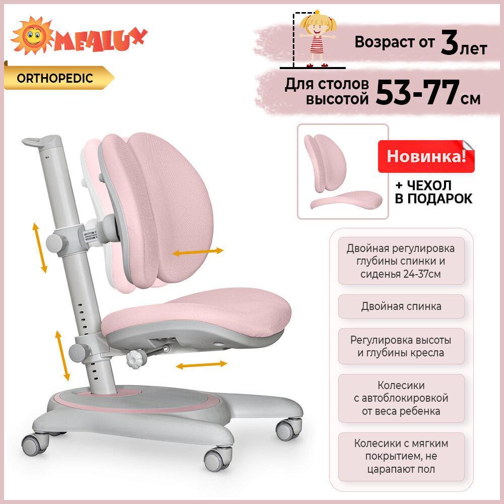 Компьютерные кресла Растущее детское кресло для дома Ortoback Duo Pink (арт. Y-510 KP) для обычных и растущих парт + чехол
