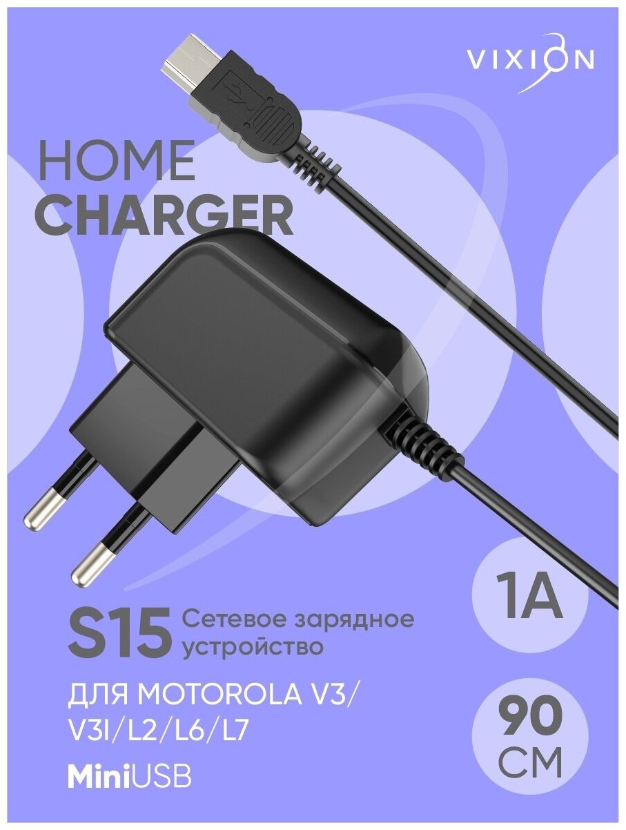 Зарядки для гаджетов Сетевое зарядное устройство VIXION S15 (1A) miniUSB для Motorola V3 (V3i/L2/L6/L7) (черный)