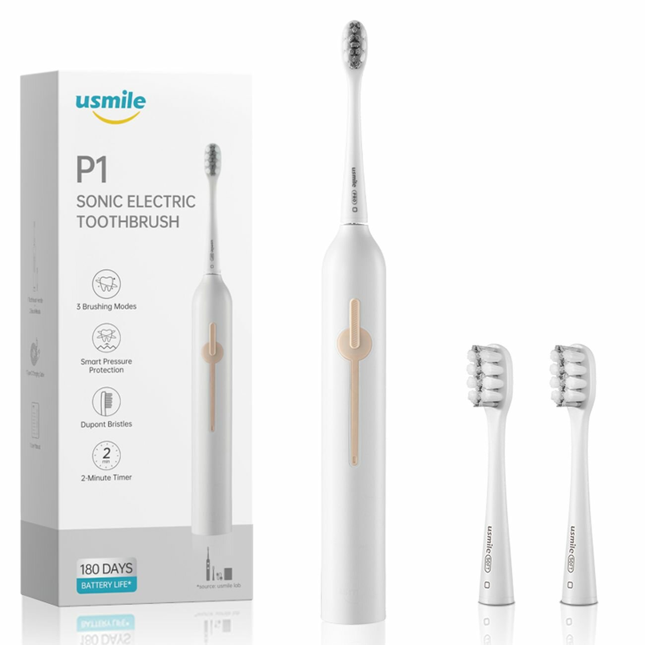 Электрическая зубная щетка usmile P1 белого цвета, время автономной работы 180 дней, 3 режима