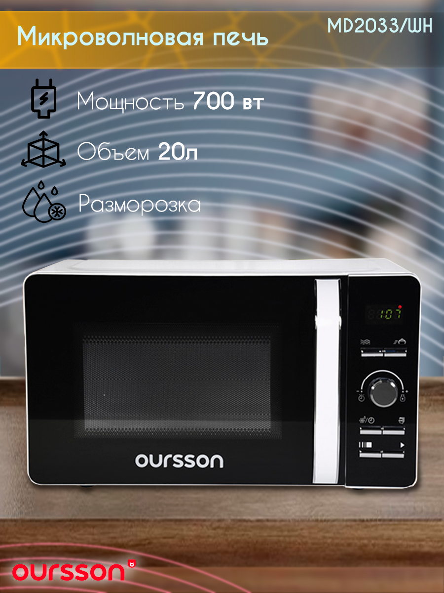 Микроволновые печи Микроволновая печь Oursson MD2033/WH, 700Вт, 20л, белый /черный