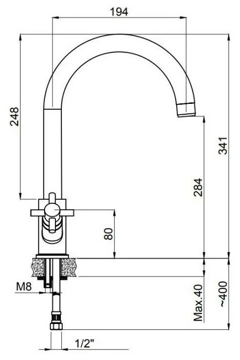 Лучшие цены. Смеситель для кухни С поворотным изливом Adell Forte (15304431) Крепление шпилька\гайка Кран-букса керамическая 90° 1/2. Магазины в вашем городе.