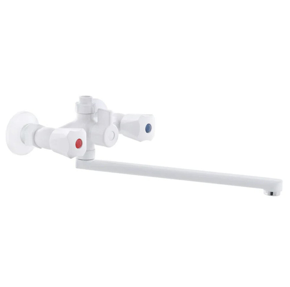 Лучшие цены. Купив смеситель PLAMIX Omega-140 White с двухвентильным управлением, Вы сможете избавить себя от необходимости отдельного приобретения крана для умывальника. Достаточно просто повернуть излив на раковину и можно комфортно им пользоваться. PLAMIX Omega-140 White – это качественный смеситель для ванны, выполненный из термопластика. Для переключения на душ в смесителе для ванны с длинным изливом PLAMIX Omega-140 White применяется картриджный девиатор. Магазины в вашем городе.