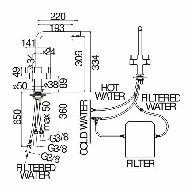 | Подвод воды | шланги / 360 мм / G 3/8" |