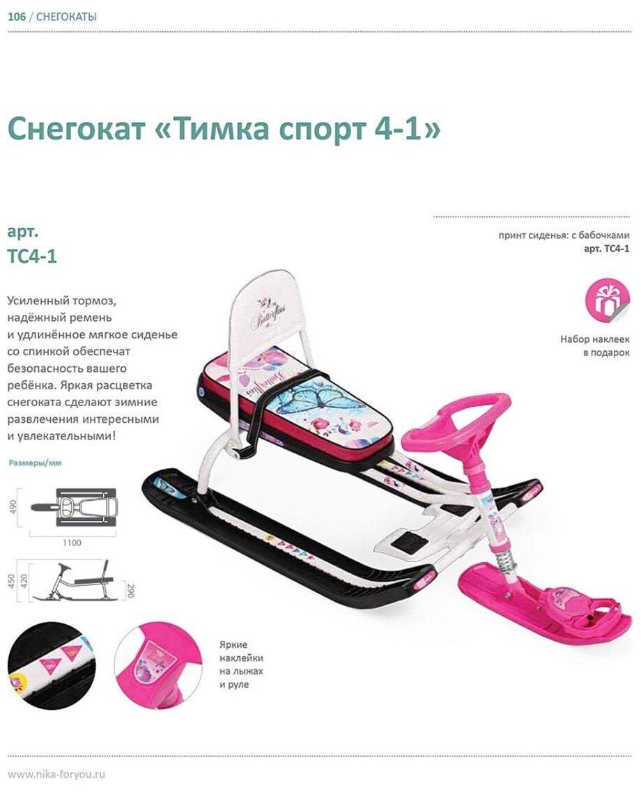 Снегокат тимка спорт 4-1 до 100 кг NIKA ТС4-1/Б2 С бабочками