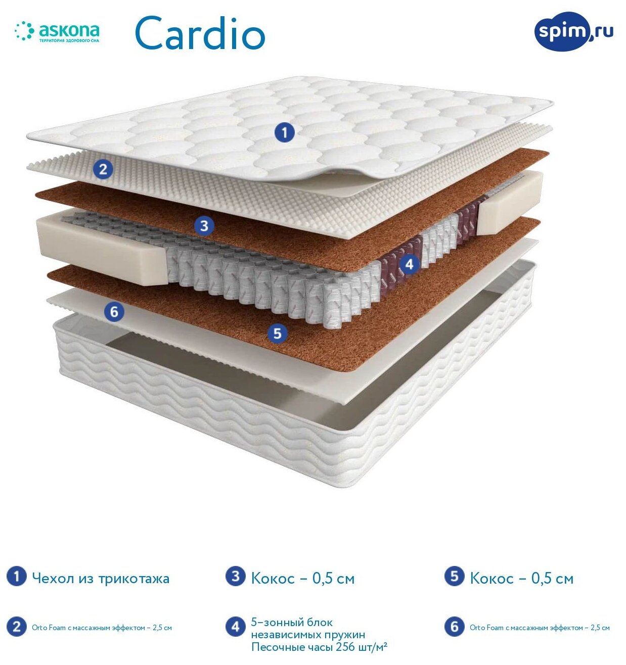Лучшие цены. Askona Terapia Cardio – это современный матрас, позволяющий добиться желанного комфорта, избавиться от напряжения в мышцах и улучшить циркуляцию крови в организме. Ячеистая ортопедическая пена гарантирует потрясающий комфорт и оказывает антибактериальное действие. Натуральный материал хорошо пропускает воздух. Матрас Askona Terapia Cardio изготавливается с использованием кокосовой плиты, предупреждающей распространение нежелательных запахов. Материал обеспечивает теплоту, сухость и гигиеничность. Магазины в вашем городе.
