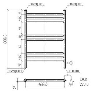 Полотенцесушители Полотенцесушитель электрический "Богема", 400х600 мм, 8 перекладин