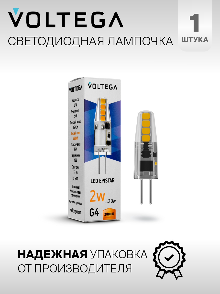 Лампочка светодиодная G4 форма капсульная 2W теплый свет Voltega Simple Capsule 2800K 1 шт. Упаковка 6 шт. 1 032 ₽ Подробнее