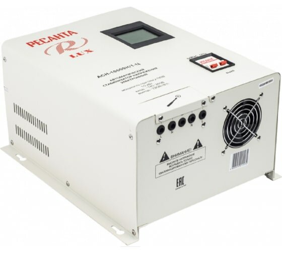 Стабилизатор напряжения АСН-12000 Н/1-Ц Ресанта Lux настенный, однофазный; 12000 Вт; 63,2А; клеммы; LСD-дисплей; 140-260В