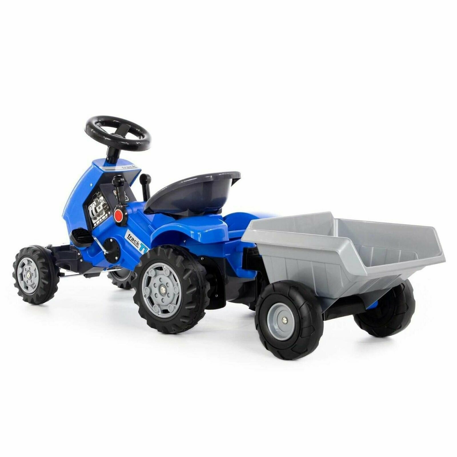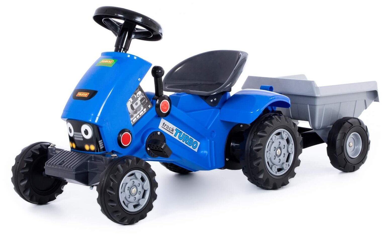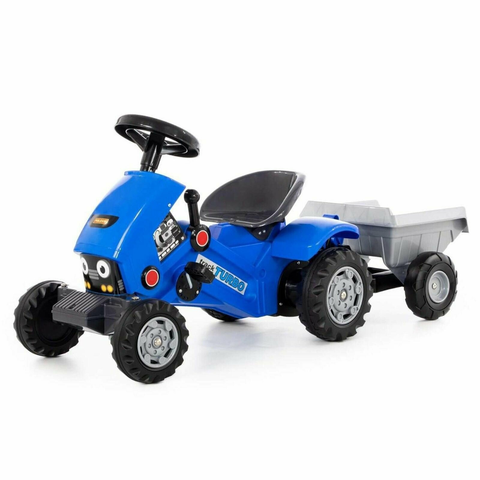 Каталка-трактор Полесье Turbo-2, с педалями, синяя, с полуприцепом