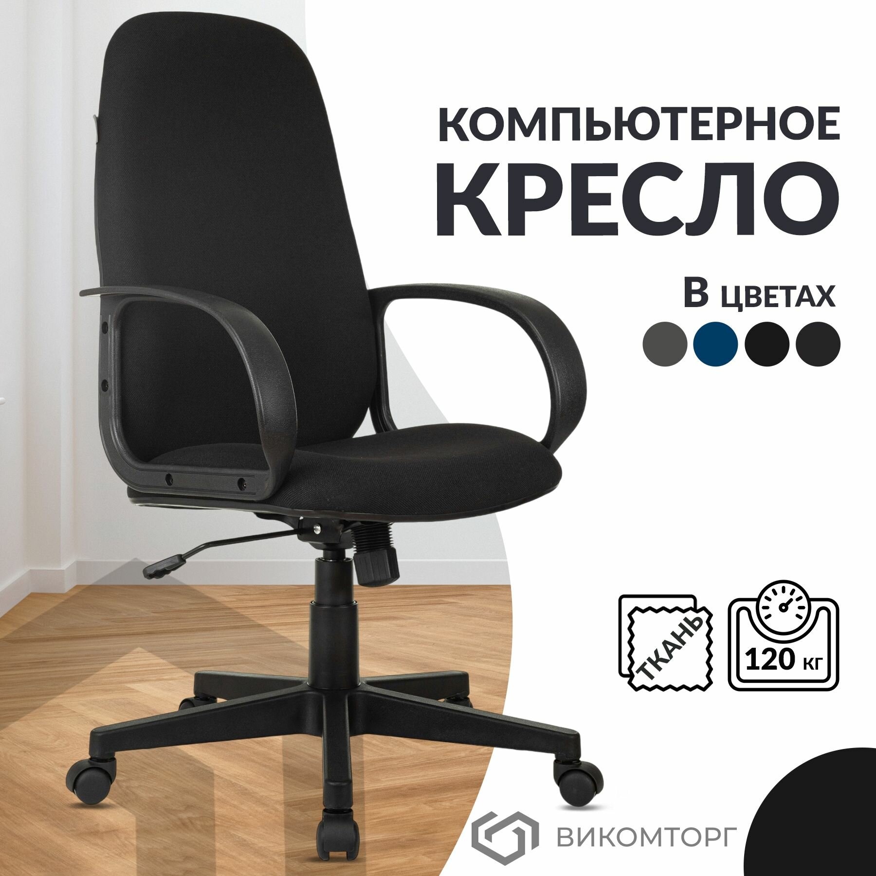Кресло Бюрократ компьютерное черное, ткань, крестовина пластик - Кресло руководителя, с подлокотниками