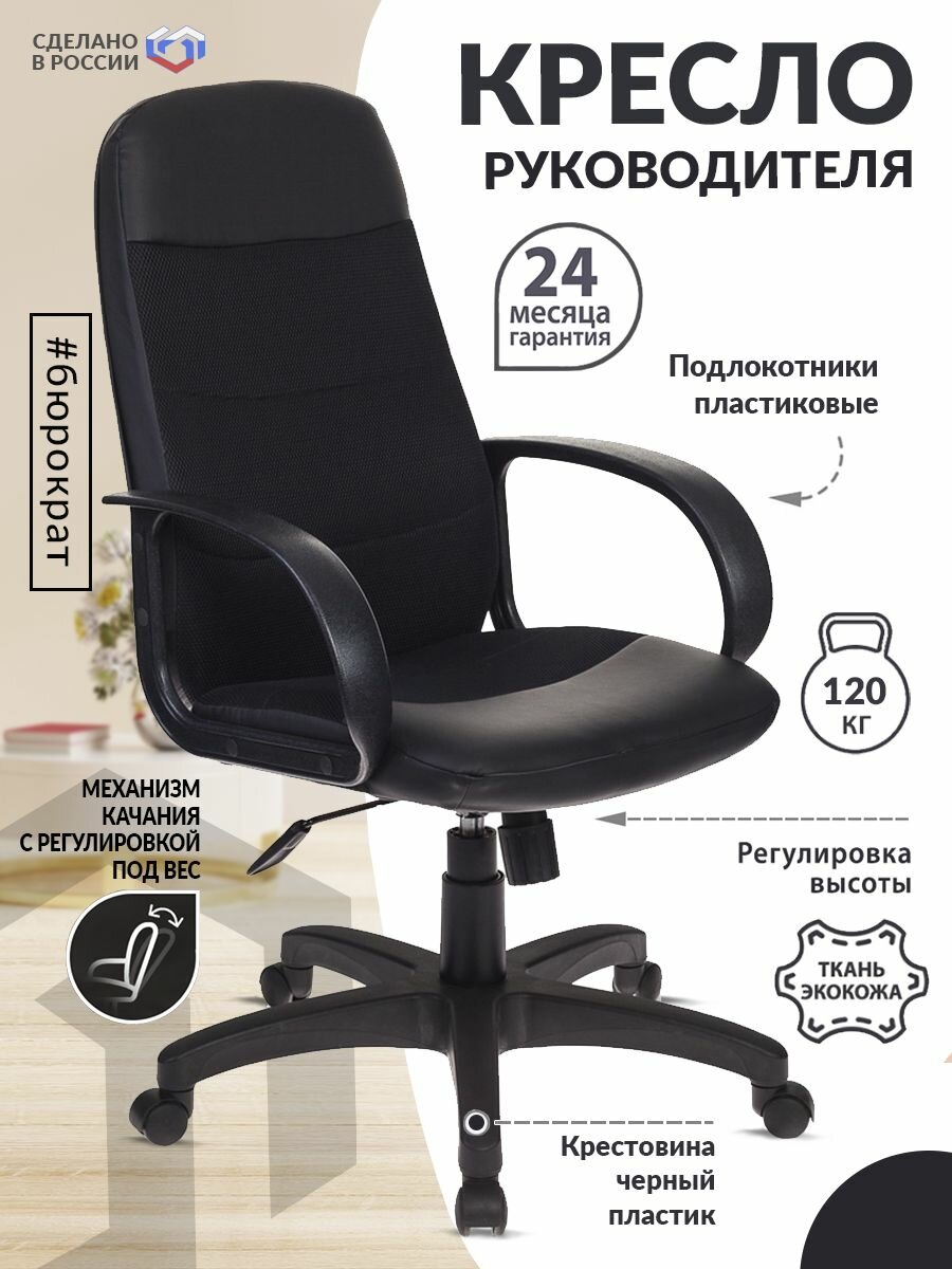 Кресло руководителя Бюрократ, черный, экокожа/сетка, CH-808AхSN/LBL+TW-11
