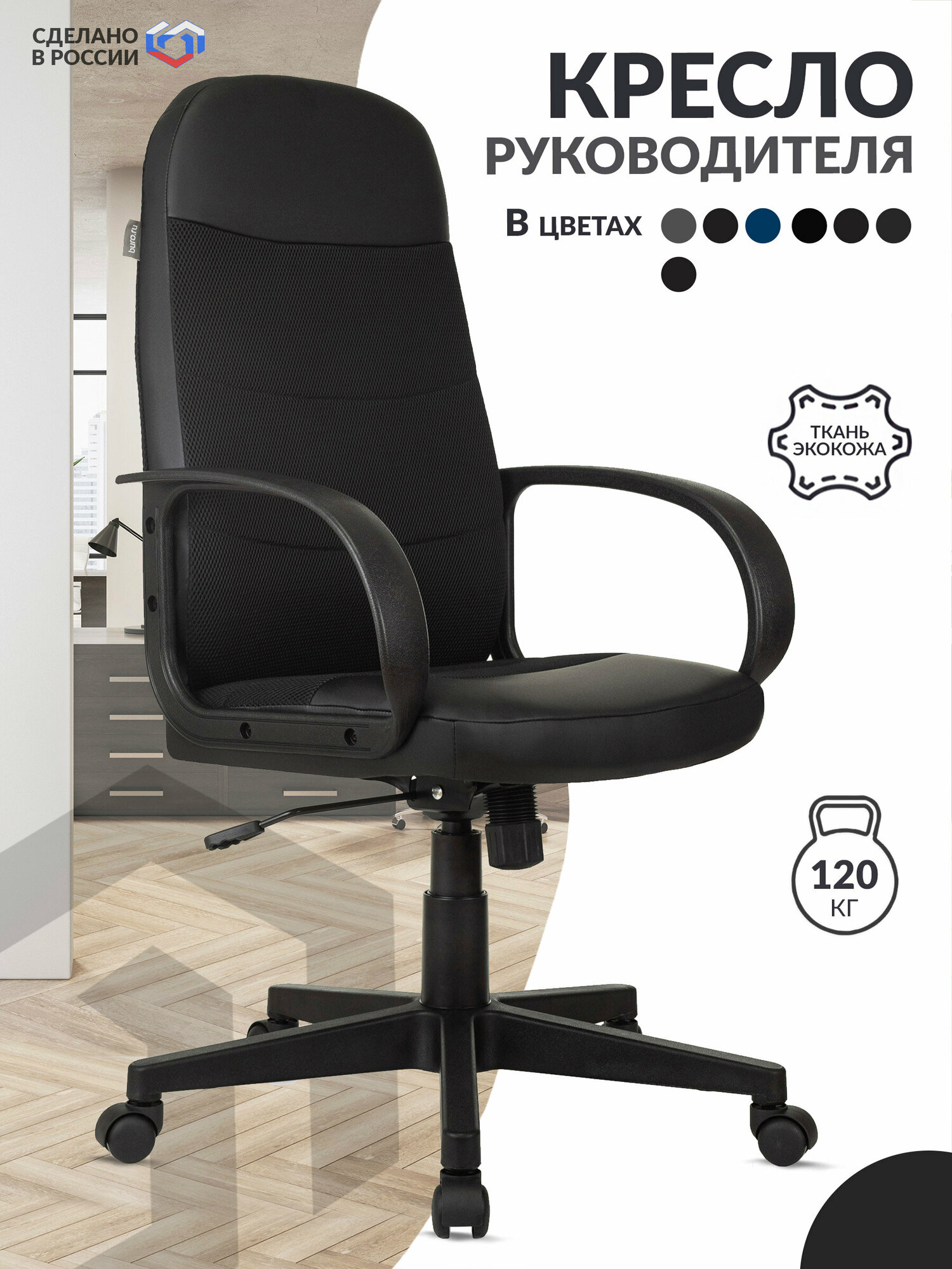 Кресло для руководителя Бюрократ CH-808 черное (ткань/пластик) 6 814 ₽ Подробнее