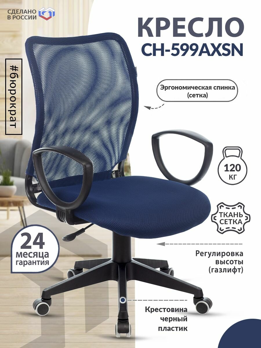 Кресло компьютерное Ch-599AXSN синий, сетка, ткань / Офисное кресло для оператора, персонала, сотрудника, для дома