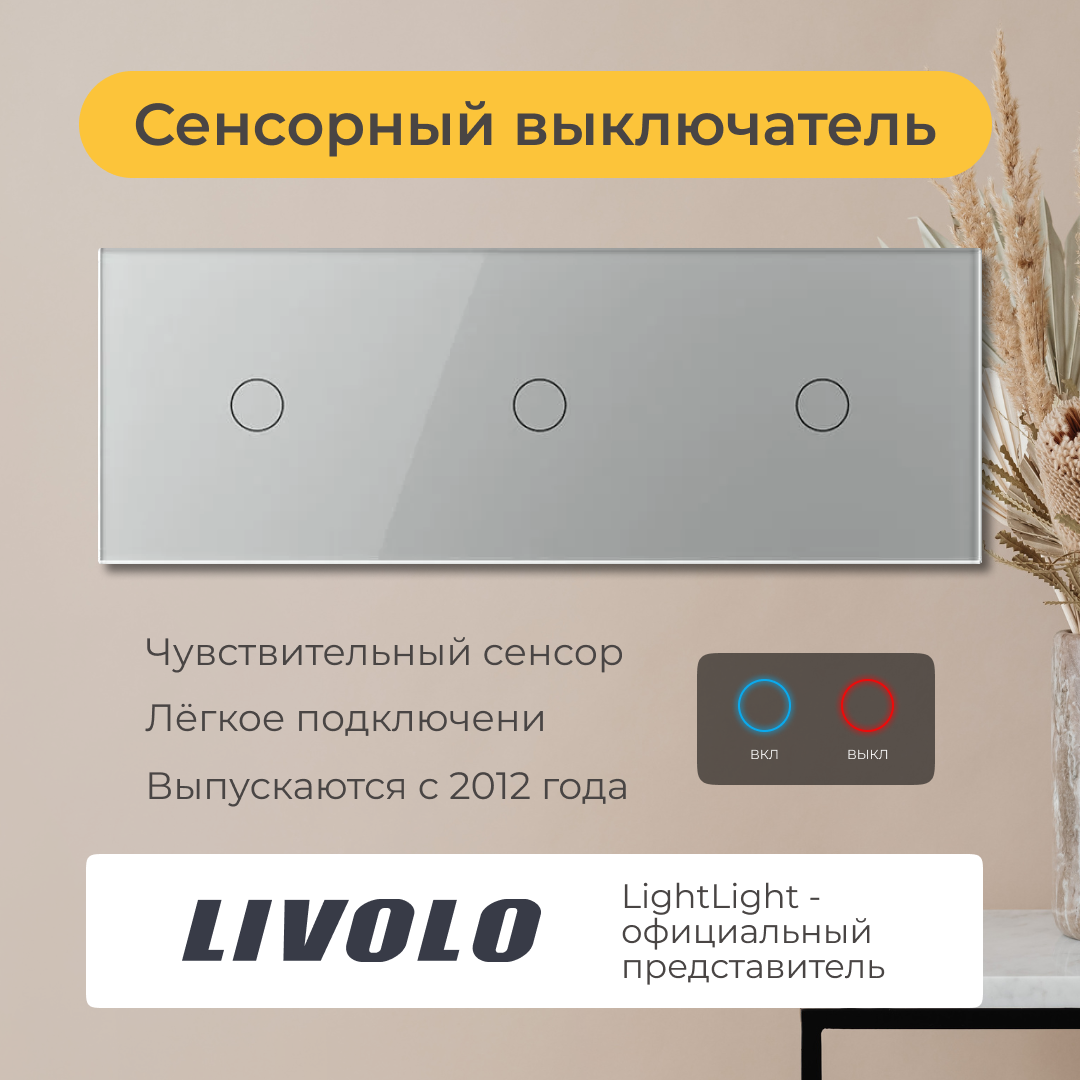 Выключатели Трёхклавишный проходной сенсорный выключатель Livolo (VL-C701S/C701S/C701S-15)