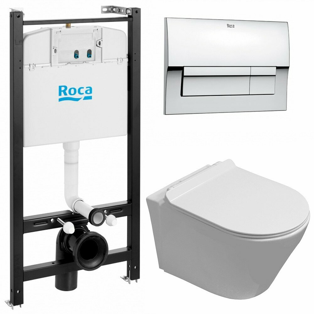 Лучшие цены. Комплект: - инсталляция Roca Active с крепежом 89011001R - двухрежимная кнопка смыва Roca Active B01, глянцевый хром 8901170B1 - унитаз подвесной безободковый Cerutti Ortler Aria B-2380-3 с сиденьем Все, что необходимо для установки подвесного унитаза, в одной коробке. Магазины в вашем городе.