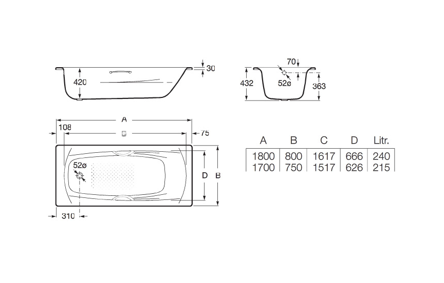 | Комплектация | ванна / ножки / сифон |
