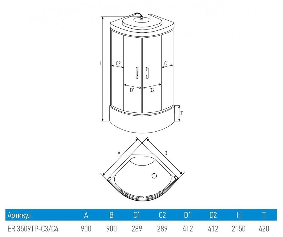 Душевая кабина ERLIT 900*900*2150 ER3509TP-C3 RUS