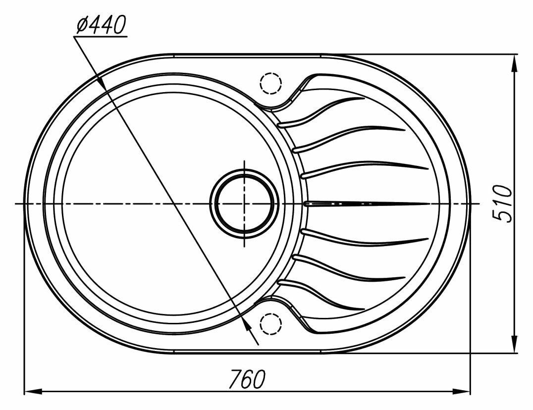 Мойка для кухни врезная каменная Dr. Gans БЕРТА-760, цвет черный, с крылом, овальная, 760х510х217 мм