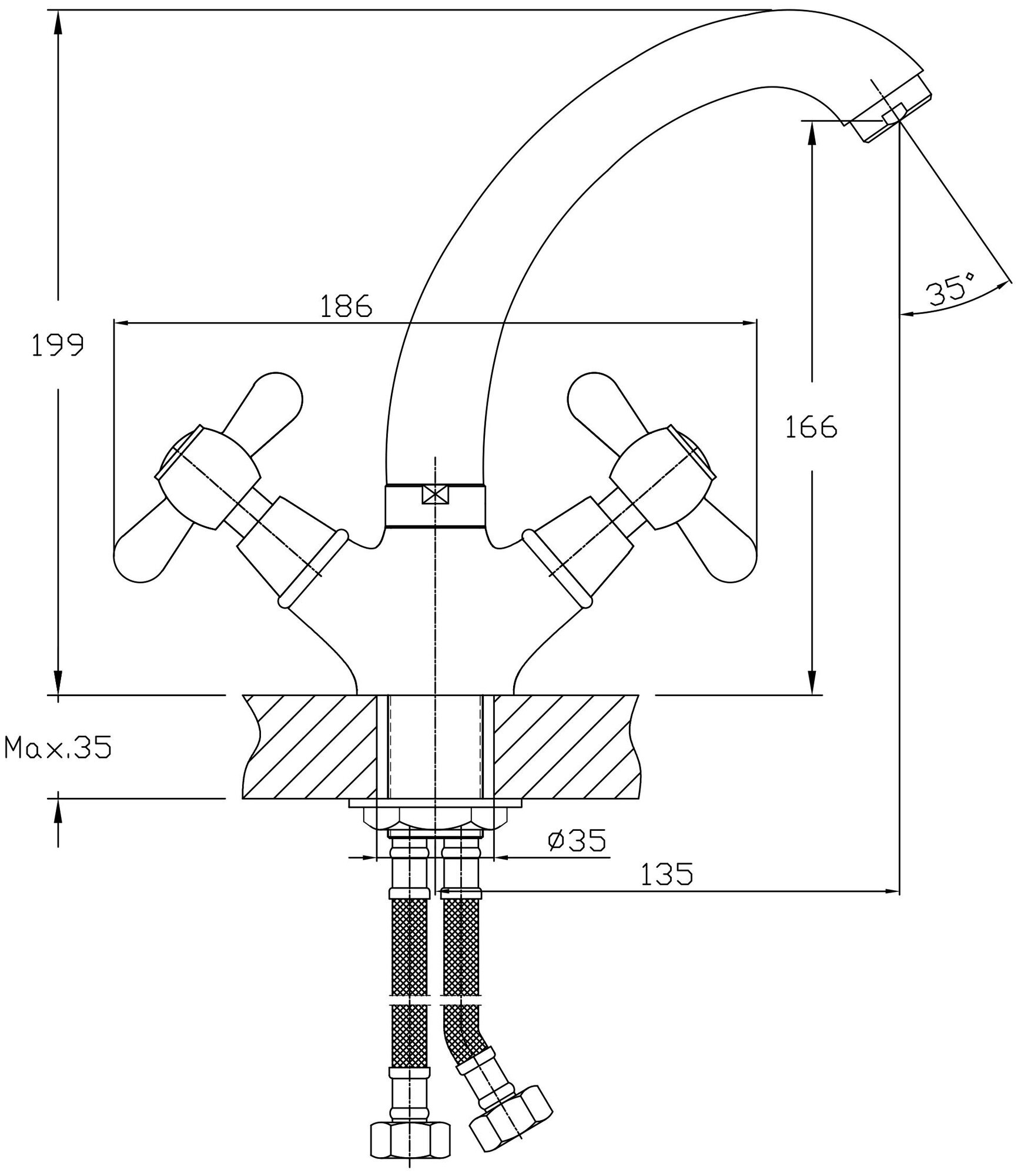 Лучшие цены. Двухвентильный смеситель для кухни Haiba HB4324. Технические характеристики: - Цвет: хром. - Материал: латунь. - Механизм: керамическая кран-букса. - Управление: двухвентильное. - Излив: поворотный. - С аэратором. - Стандарт подводки: G 1/2. - Тип крепления: шпилька. - Монтаж: на мойку. В комплекте поставки: - Смеситель. - Гибкая подводка. Магазины в вашем городе.