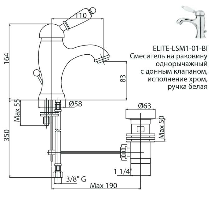 | Функции и возможности | рычажный донный клапан |