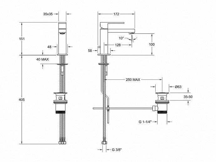 Лучшие цены. Смеситель для раковины GESSI RETTANGOLO 20001.031, однорычажный с донным клапаном на 1 1/4", соединительные шланги на 3/8", цвет хром. Магазины в вашем городе.