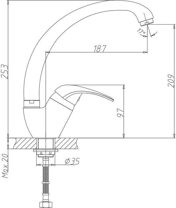 Смеситель Смеситель для кухни 40к HB4103-2 HAIBA боковая, п/гайку