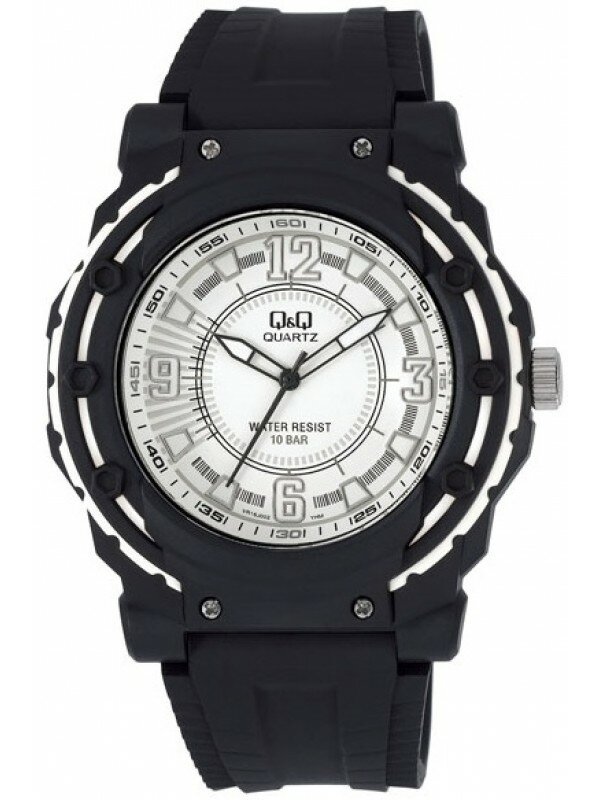 Лучшие цены. Модель: Q&Q VR16-002 Наручные часы мужские Механизм: Кварцевый Корпус: Пластиковый Циферблат: Белый Стекло: Минеральное Браслет: Силиконовый Водозащита: 100 м Подсветка: Люминесцентные стрелки Размер: 47.5 мм Модель: Q&Q VR16-002 Пол: Мужские Механизм: Кварцевый Корпус: Пластик Браслет: Каучук Подсветка: Люминесцентная Водозащита: 100 м Стекло: Минеральное Циферблат: белый Размер: 47.5 мм Гарантийный срок: 1 год Комплектация: часы, фирменная коробка, гарантийный талон (паспорт). Магазины в вашем городе.