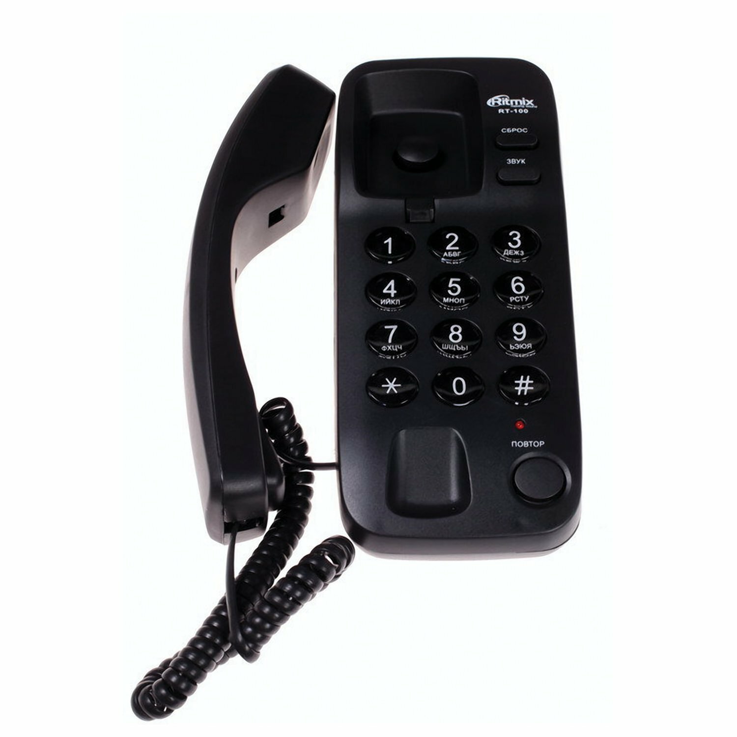 Телефон проводной RITMIX RT-100 black, без дисплея, компактный , набор номера на базе аппарата, импу