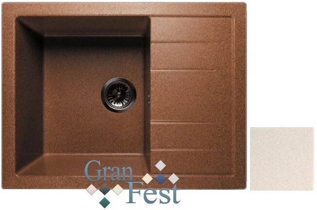 GRANFEST Мойка QUADRO 650L 1-чаша+крыло 650*500мм терракот арт.GF-