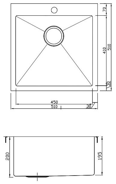 Мойка Seaman Eco Marino SMV-510, стандартная комплектация, плоский кант, матовая нержавеющая сталь, квадратная