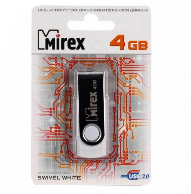 Накопитель USB 2.0 4GB Mirex SWIVEL 13600-FMUSWT04 белый (ecopack)