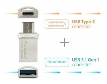 Флешка Transcend 64GB JetFlash 890, USB 3.1/USB Type-C, OTG, Серебряный